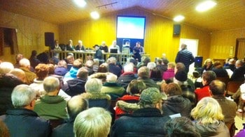 Folkemøte om bompenger på Galterud. Hele bygda har engasjert seg i kampen mot bompenger på lokalvegen. Foto: Ola Bjørlo Strande / NRK