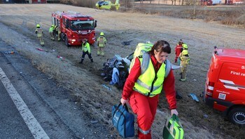 The car was on fire after the crash, but passersby were quickly extinguished. It must be great material damage to both vehicles. According NRK photographer on the scene lay wagon train on one side of the road and passenger car on the other.