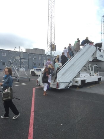 Here goes the passengers aboard Air Baltic plane again after the first crew was taken with drink. The plane was set up with a new crew.