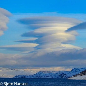 Rune Olav Skoglund, meteorology consultant at the Weather Service in northern Norway, says that these clouds popularly called “the lens clouds.” In Latin is called Cloud type lenticular cloud.